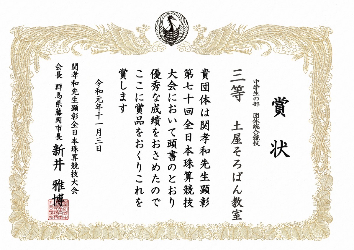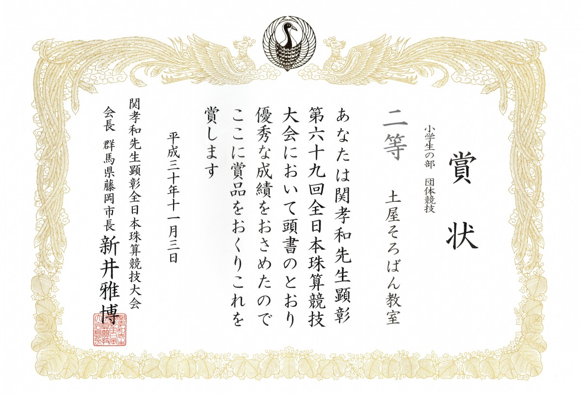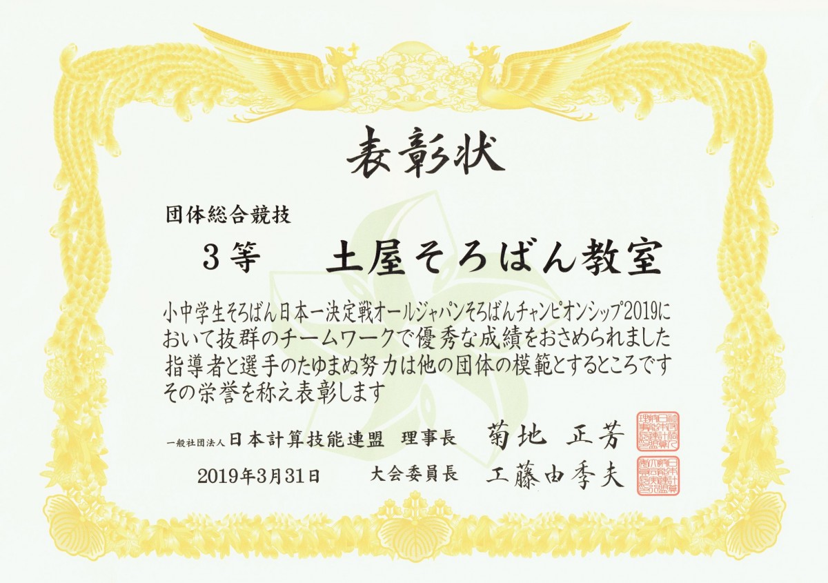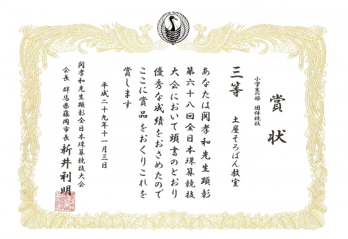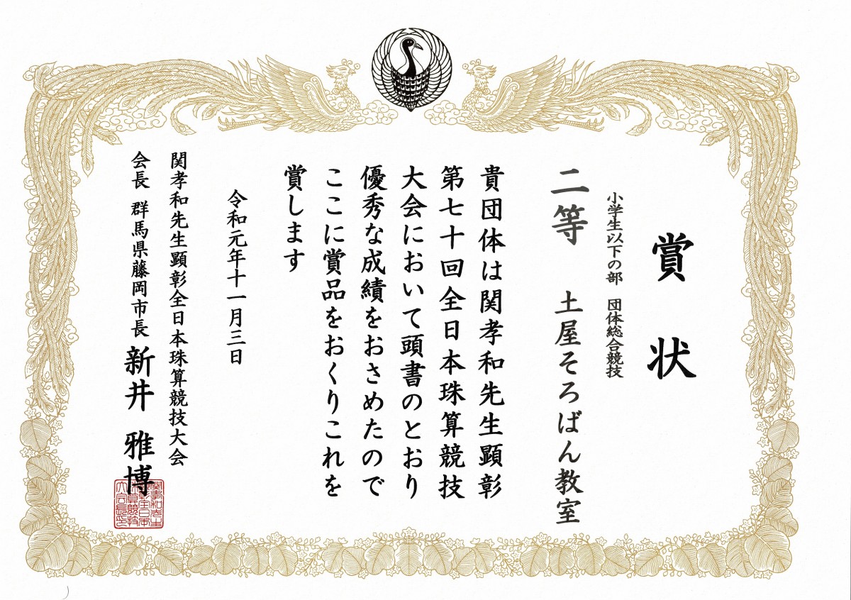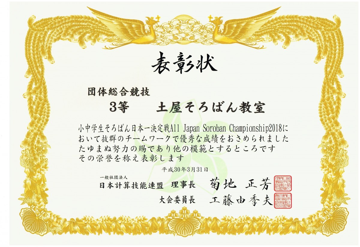 (3年生の部、4年生の部、6年生の部、中学生の部にて優勝)