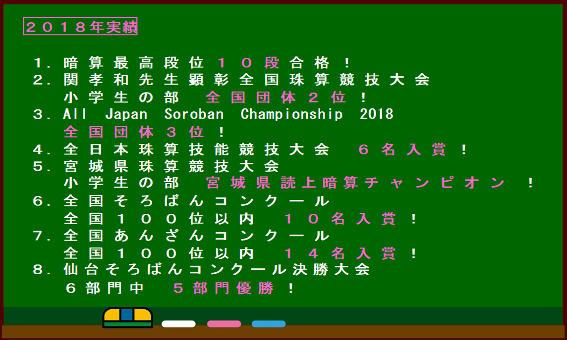 ・暗算9段 1名、8段 1名、7段 3名合格!!